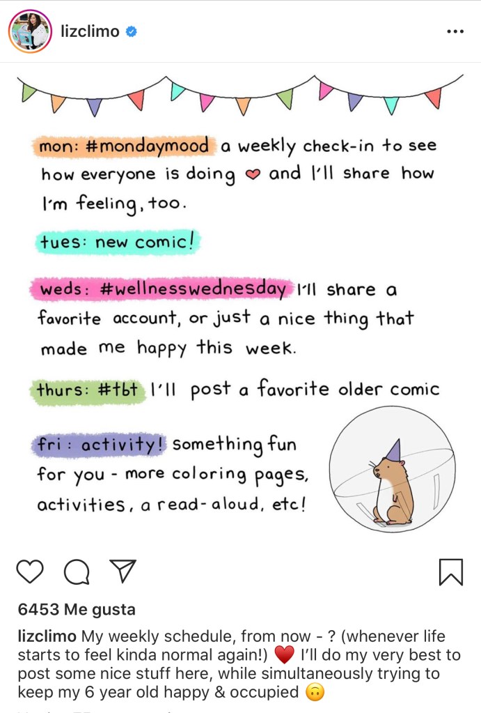 Liz Climo pone a nuestra disposición un libro en pdf gratuito para colorear que os podéis descargar en su biografía de Instagram.