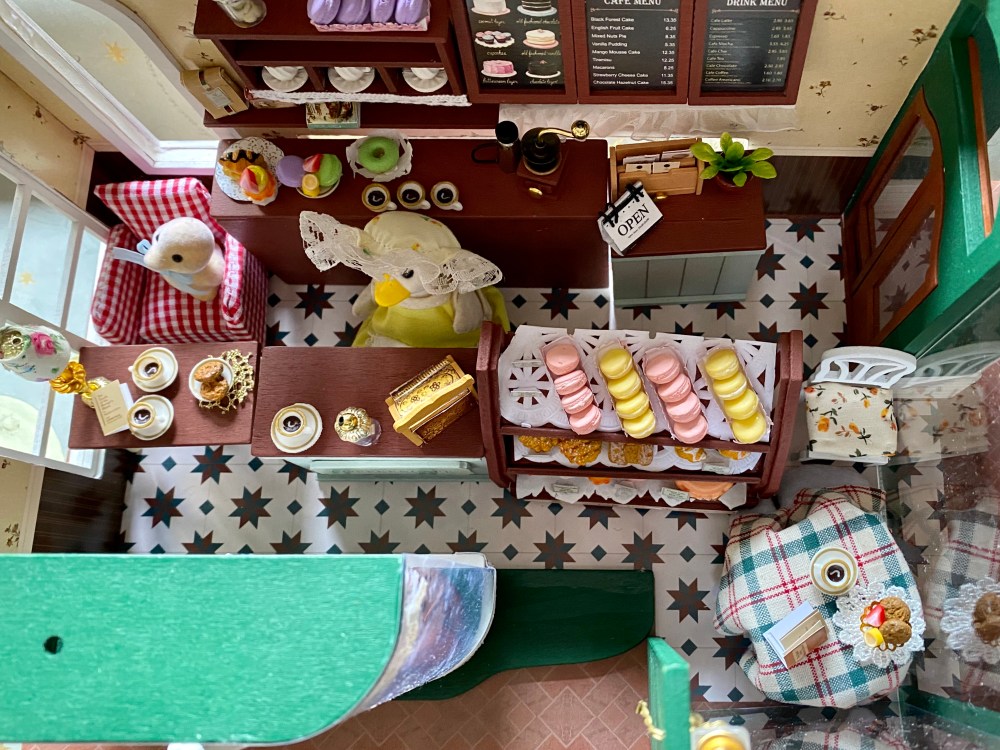 O podemos montar esta cafetería-pastelería en miniatura. Este kit de Lemogo es tan ameno de montar como complicadillo, os explico: