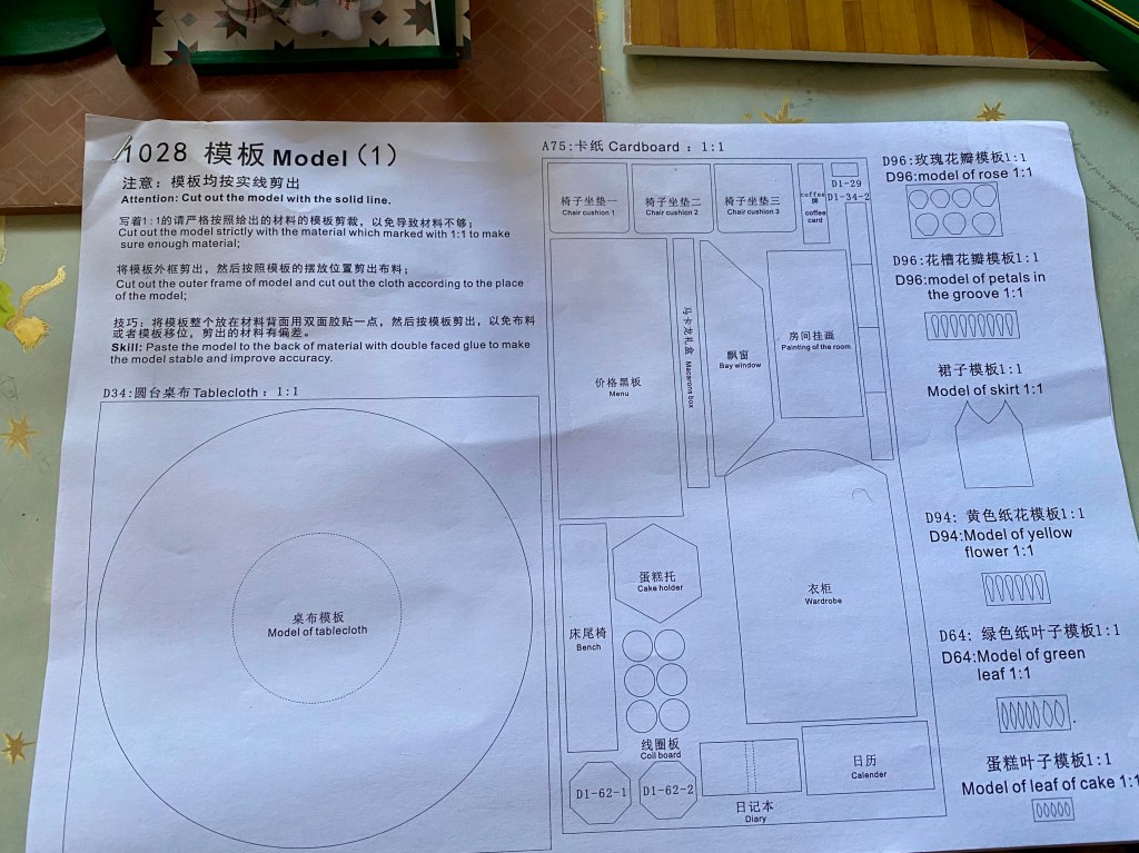 Este apéndice sirve como guía para saber cómo cortar el textil, pero la verdad es que entre que las traducciones chino-inglés no están demasiado conseguidas (aunque sean muy graciosas) y que la tela es bastante limitada mi consejo es evitar el pegar la tela y en vez de eso, coser a mano.