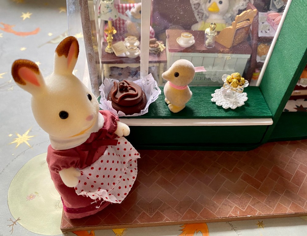 Preparando el escaparate (la tarta está hecha con fimo).