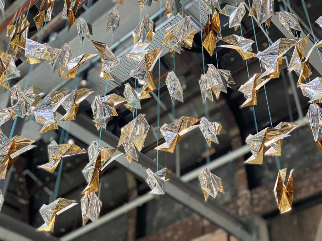 Una cúpula de pajaritas metalizadas: