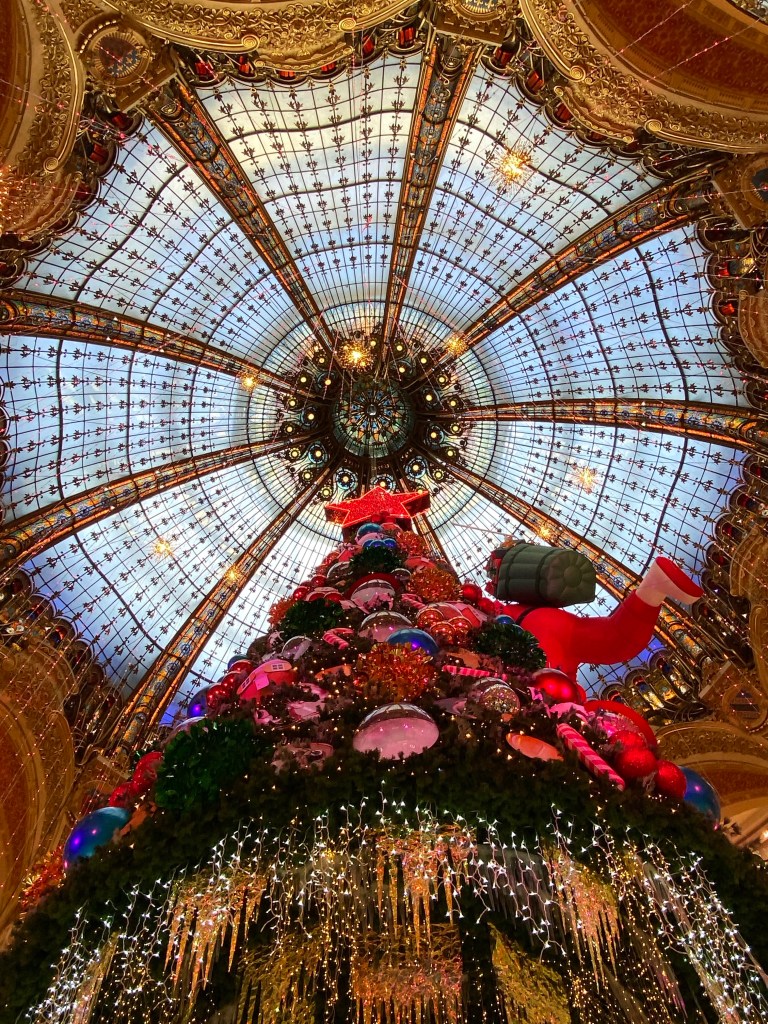 La cúpula modernista más bonita de París lleva desde 1976 sorprendiendo cada año con una propuesta diferente de árbol de Navidad. Si en mi último viaje el árbol tenía tenía garabatos dibujados por niños este año bajo el emblema «1,2,3, Noël» nos encontramos….a un papá noel astronauta. Personalmente me quedo con versiones más tradicionales (como la decoración de 2017), ¡pero para gustos, colores!