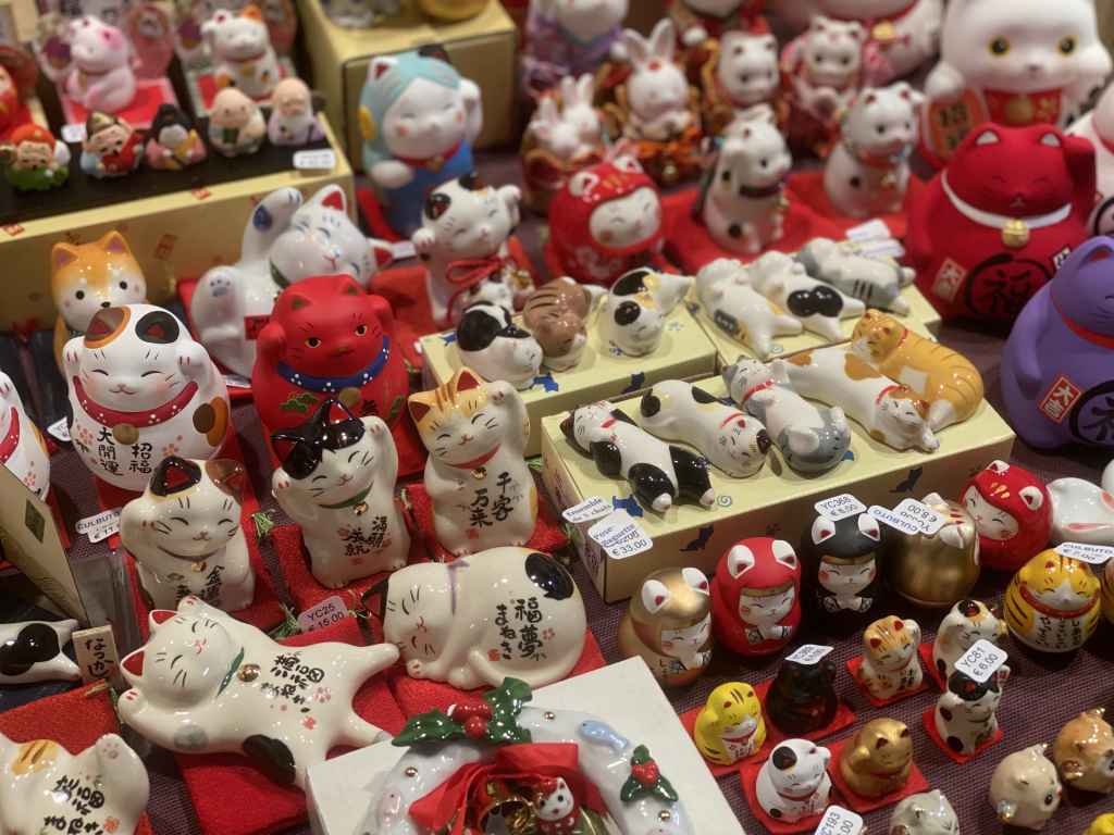 La estación de metro Pyramides, muy cerca del Louvre, nos deja en el corazón del barrio conocido como «El Pequeño Tokio». Y escondido entre sus diminutas calles damos con el Passage Choisseul (que otro día os hablaré de él). Allí encontramos el mercado navideño de Espace Cinko, un universo multicolor donde millones de gatitos y piezas de origami compiten entre sí para que te los lleves a casa.