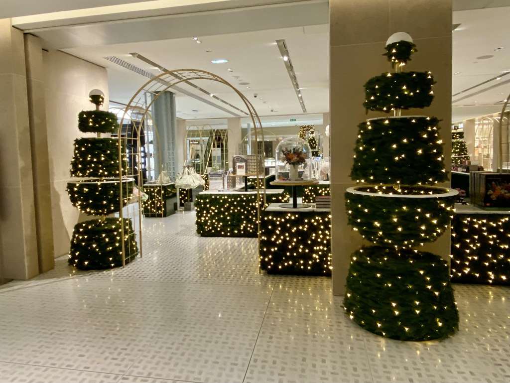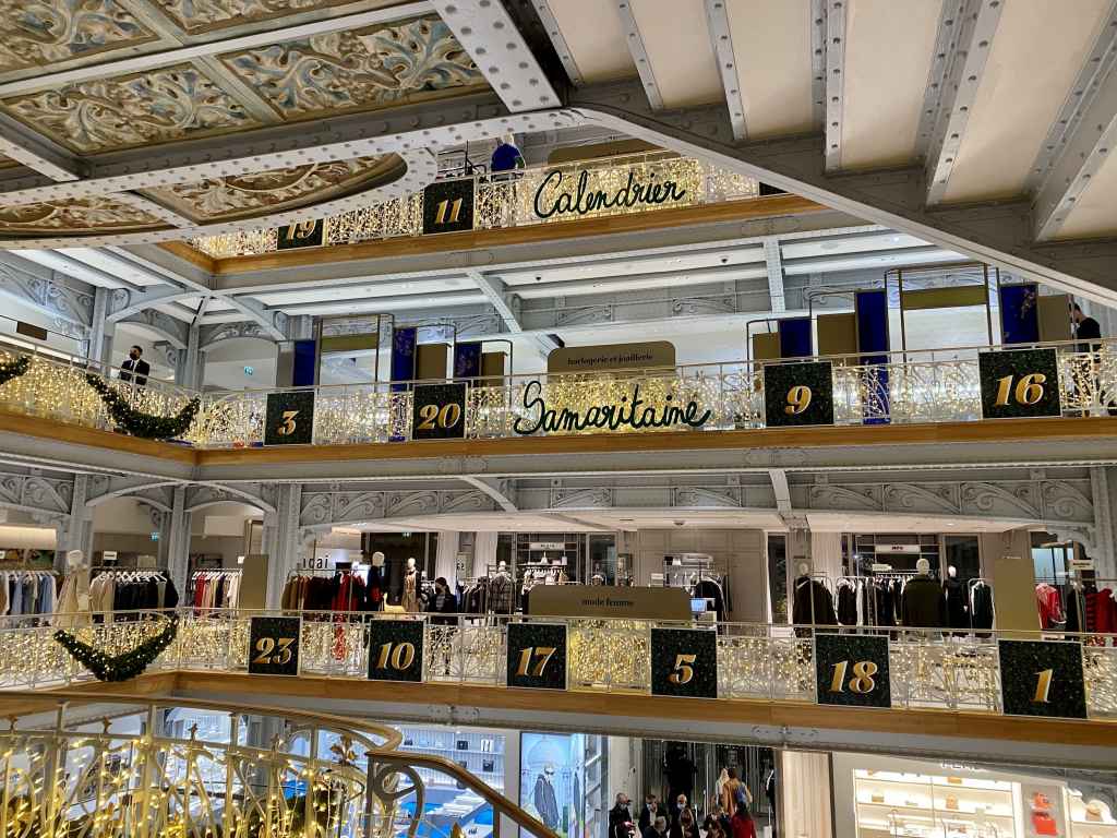 Ésta joyita del art decó y art noveau de Gustave Eiffel ha reabierto este año después de nada más y nada menos que 16 años cerrada, con lo que son sus primeras Navidades desde hace mucho tiempo. Las guirnaldas de luces doradas y abeto decoran interiores y exteriores, creando un calendario de adviento con la propia estructura del edificio . Ojo, Galleries Lafayette, que tenéis competencia.
