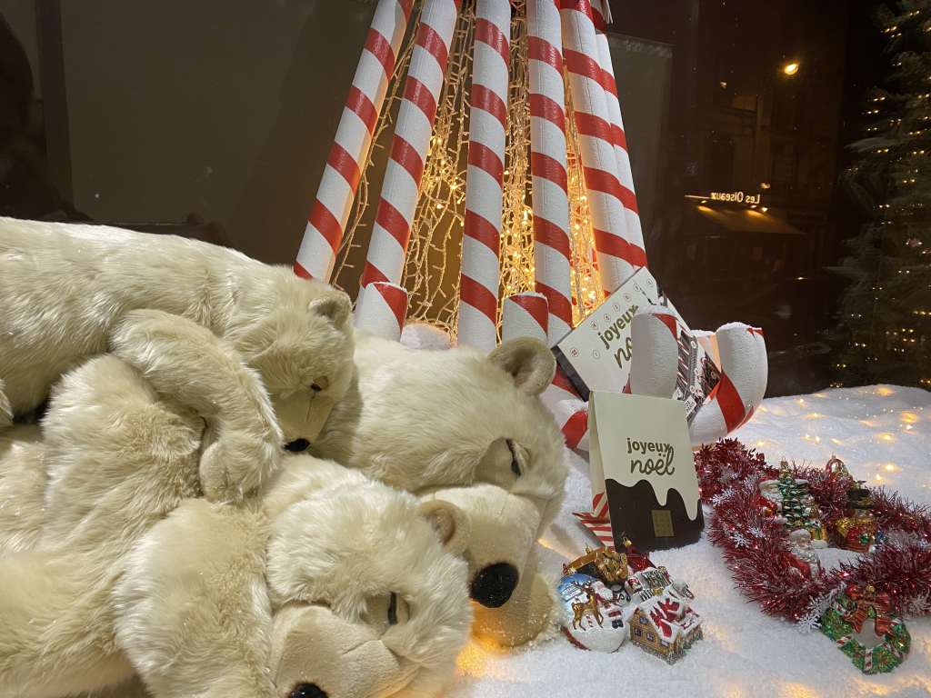 Y justo a su lado, más escaparates y luces navideñas en el Bazar de Hôtel de Ville.