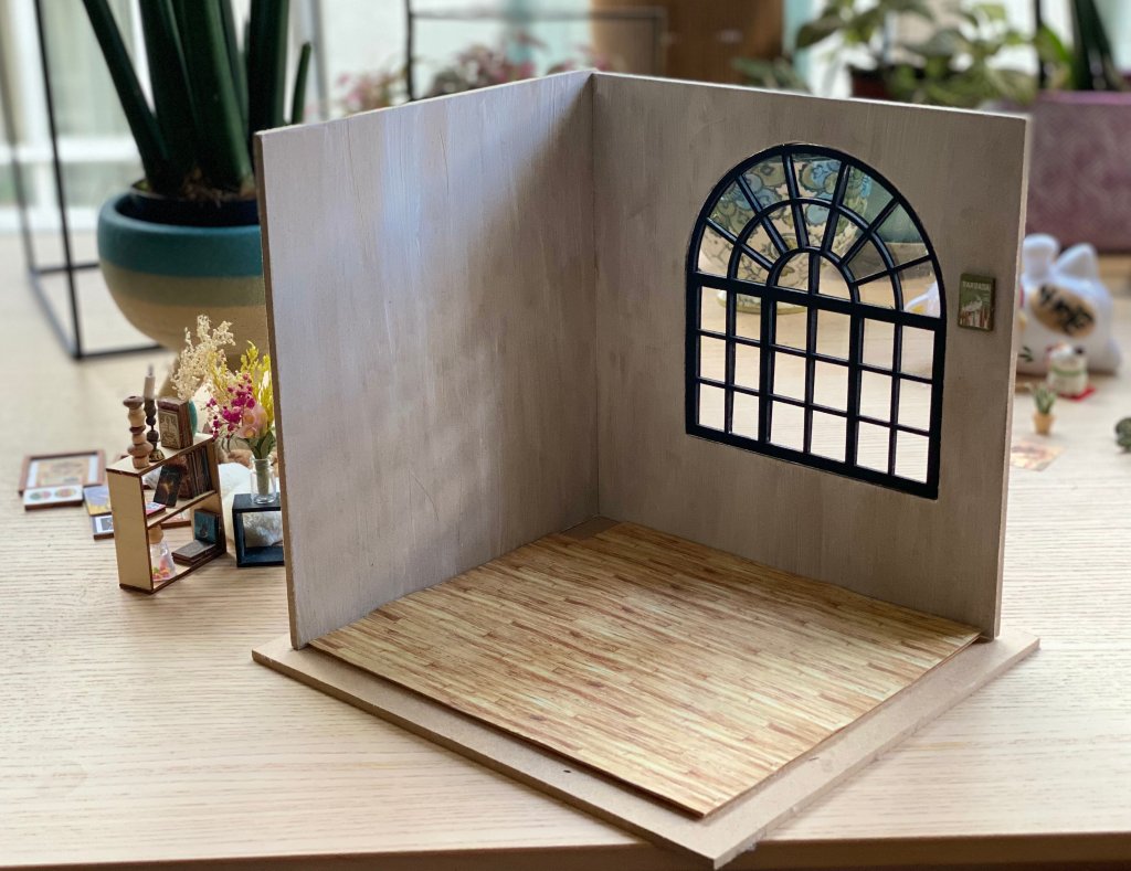 Pintamos las paredes, pegamos el suelo y colocamos la ventana: